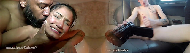 04:57Latina Kelly Oliveira takes shower before sex with large Black Beefstick