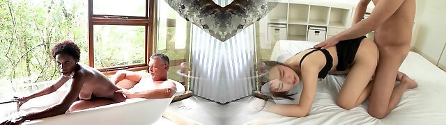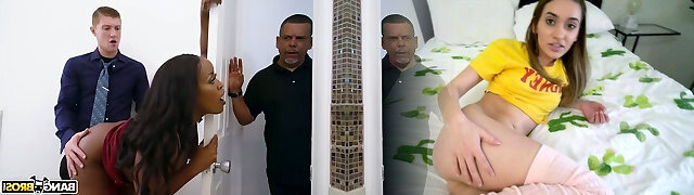 05:00Black teen asks her stepdad to take pictures of her for her portfolio then he heads in the shower to jerk off