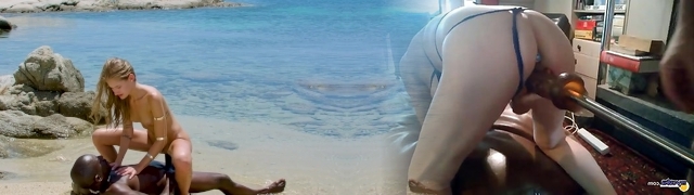 04:00African teenager smashed by 2 European dongs at the beach