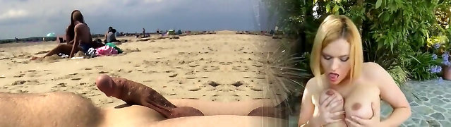 10:05She enticed me in a public place, plumbing on the beach