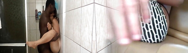 12:07Bodacious Bosomy Ebony MILF Luvs Her Neighbor's Young BWC In the Bathroom & Gets Caught By Her Husband
