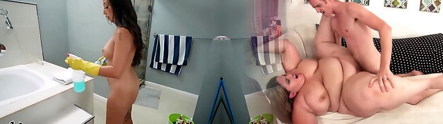 11:11Big black hooters maid went from sweeping her douche floor to fucking her tight pussy with dildo