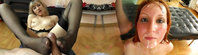 07:15Innocent blonde footjob in dark-hued stockings and nylons