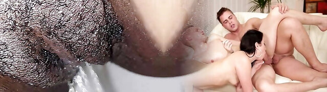 12:07Girl with hairy pussy gets a ample drizzle on her face and dark-hued cock fucks her hairy pussy and cums