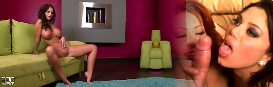 07:25Hot stunner bellows as a huge mutant dick rock her ass as she gives a blowie